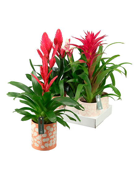BROMELIA CERÁMICA , MACETA 13 CM , 45 CM , COLORES VARIADOS